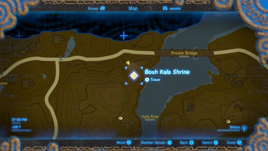 How to solve the bosh kala shrine. Be sure to drop once youre above the. Shrine Bosh Kala is located on the Southeastern side of Central Hyrule on the road past the East Post ruins leading to the River Hylia on the road to the Dueling Peaks. Paraglide to the back of the towering pillar where youll find a hidden updraft to catch up to the top.